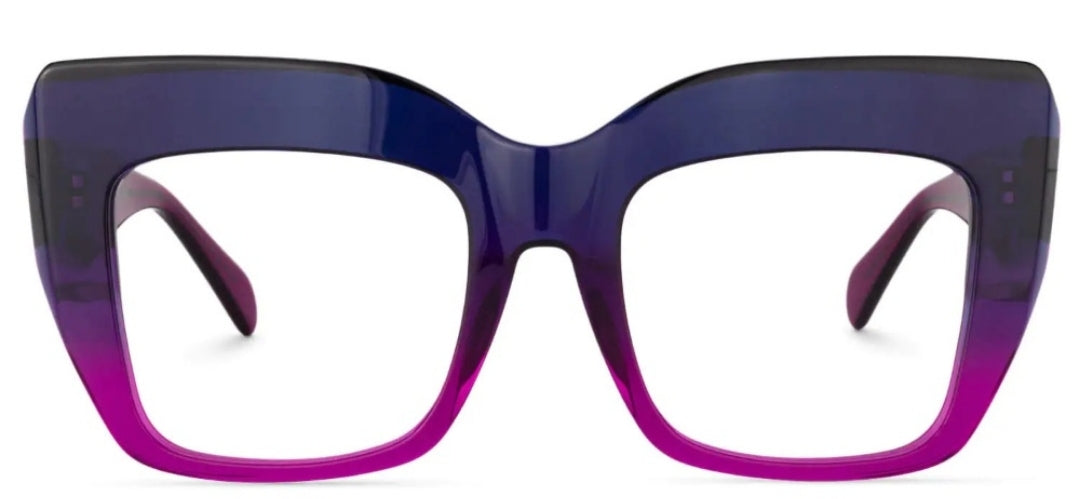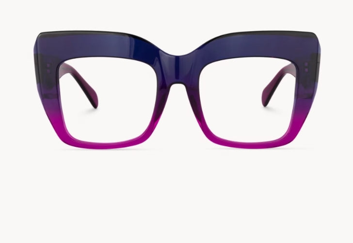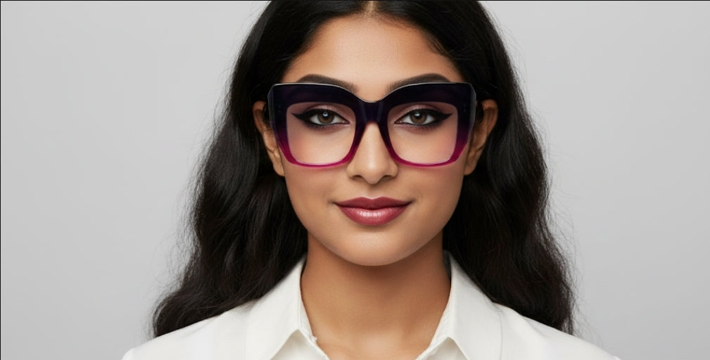 Ombre Vision: These ultra-bold, oversized frames feature a dramatic deep indigo fading to bright purple. A must-have for making a vibrant, confident statement.