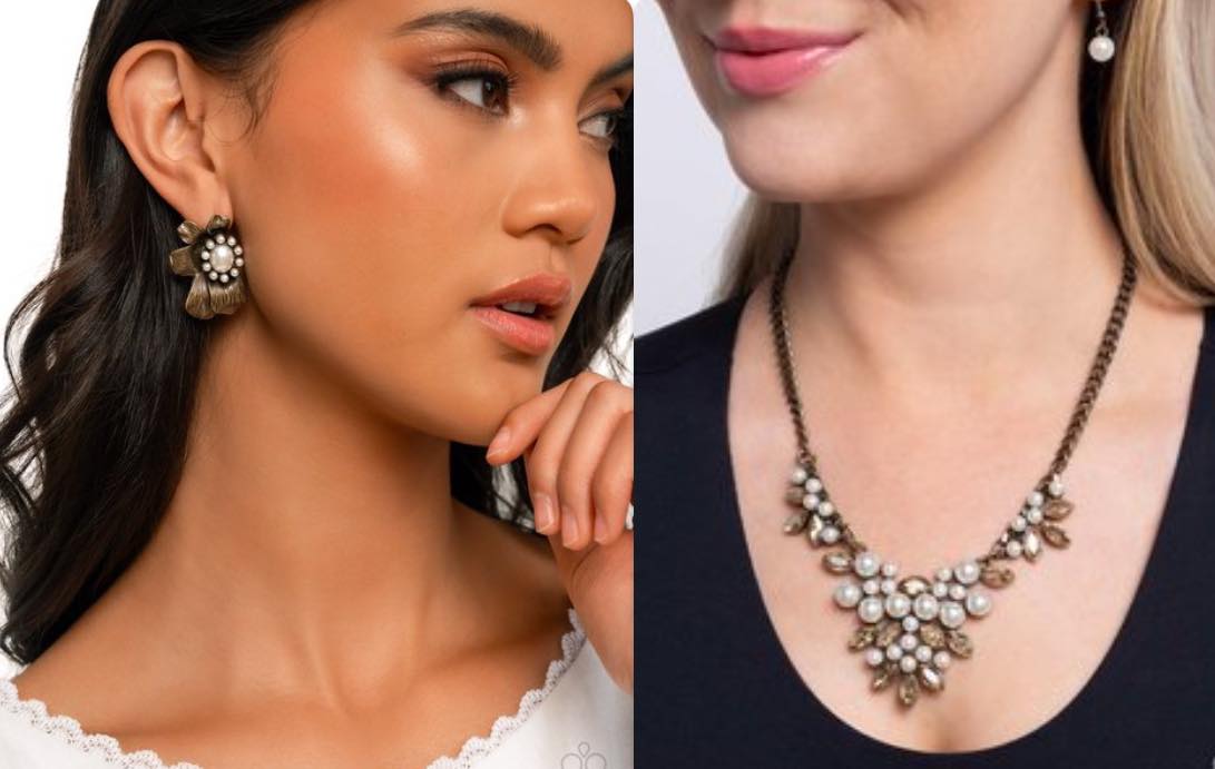 Glossy white pearls in varying sizes and faceted marquise-cut champagne gems dance along the collar in dramatic clusters along a classic brass curb chain for a razzle-dazzling showstopper. Features an adjustable clasp closure.